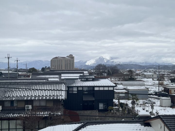 山々も白くなり、屋根にも少し雪⛄が積もりました。
