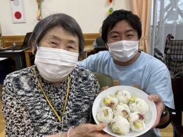先日収穫したさつまいも🍠でおにぎりを作りました🤗食べやすい一口サイズで、みなさんペロリと食べておられました😋秋は美味しいものたくさんですね~🍁